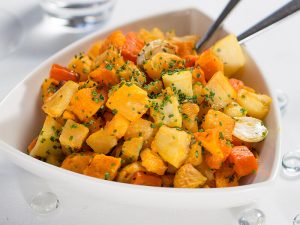 Host a roast is a beautifully cooked roast dinner with all the trimmings, for a bit of fun we suggest that you nominate a carver on each table, who gets given a chef hat, apron and will then be invited into the kitchen, one at a time, to be briefed by our chef on their duties to carve at the table, accompanied by their own serving waiter, who will bring the hot plates, vegetables and extra sauce to the table.