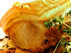 - Loin of pork, seasoning, apple sauce, crispy cracking