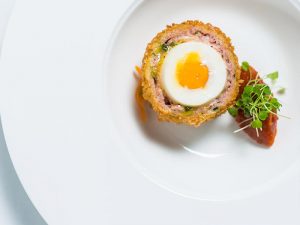 - Posh scotch egg, softly cooked, vegetable slaw , tomato chutney